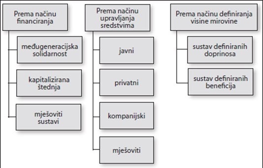 Izvor: Šimurina N., Šimović H., Mihelja Žaja M., Primorac M. (2012.), Javne financije u Hrvatskoj, Ekonomski fakultet Zagreb – Podjela mirovinskih sustava